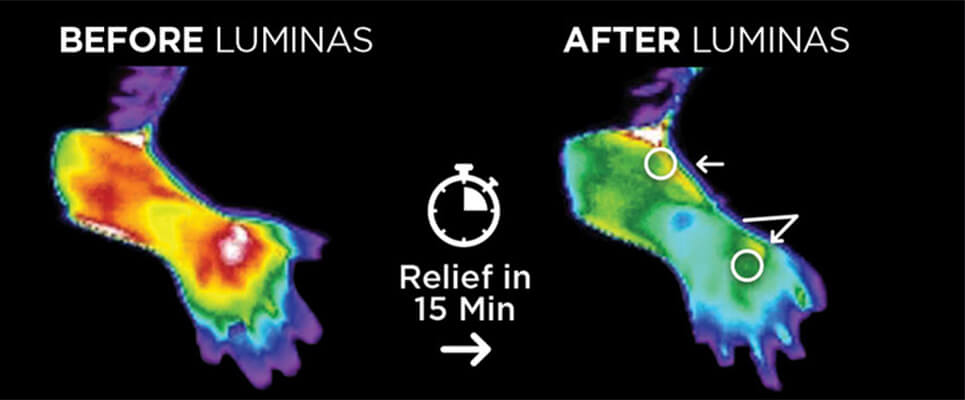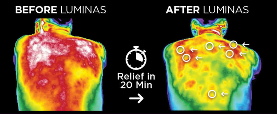 It’s long been known that chronic pain occurs due to inflammation. Most pharmaceuticals focus on blocking the pain signals caused by inflammation. Whereas Luminas cools the inflammation so the pain signals reduce naturally on their own.